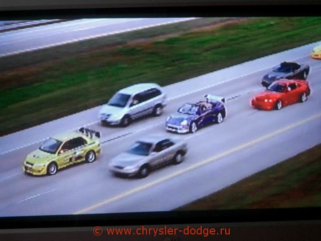Видимо, "Крайслер" проплатил фильм- герои попеременно ездять то на Себринге, то на Интрепиде. В кадре часто мелькают Неоны и 300м. А зеленый Интрепид попадает в аварию на улицах города! Наш фильм!!